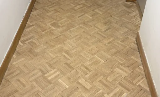 Rénovation d'un sol en marqueterie bois suite à un dégât des eaux à Aix-en-Provence.