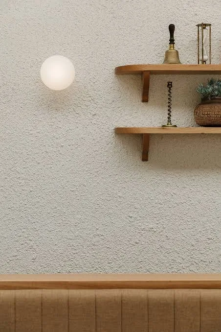 Pour terminer, malgré son retour, timide certes, mais son retour quand même, dans les It de décorations intérieures, il y a quelques consignes à respecter ou pas d'ailleurs, les goûts et les couleurs ne se discutent pas, mais bon, si jamais vous voudriez vraiment mettre en valeur ce crépi, la règle serait de l'appliquer avec parcimonie avec des teintes neutres, quelques touches de gouttelettes sur certaines cloisons ou plafonds de votre habitat, peuvent être grandement mises en valeur par une lumière rasante et naturelle par exemple, une cloison crépie qui reçoit cette lumière changera tout au long de la journée et sera du plus bel effet, même si l'éclairage est artificiel, un bon emplacement d'appliques murales, spots au sol ou au plafond, lampadaires, feront le job également.